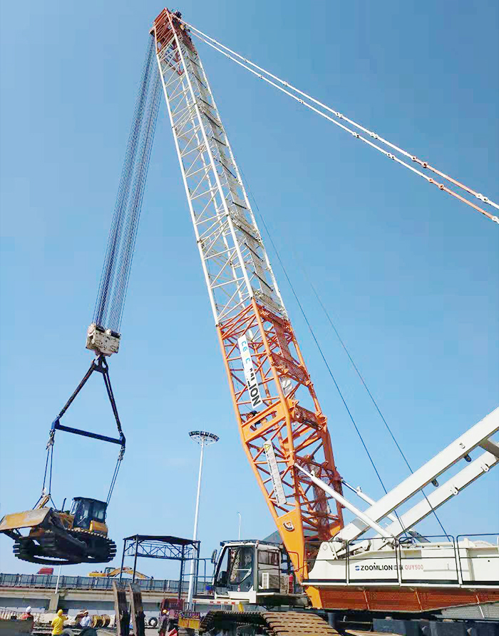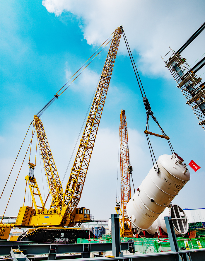 江蘇鑫鵬電力工程有限公司擁有多臺徐工履帶起重機(jī),XGC28000、XGC16000、XGC12000、XGC11000、XGC型500t、ZCC9800W ZCC8800W QUY800 QUY650 QUY500、SCC8000A SCC1100A SCC500D等,起重量最大達(dá)到2000噸,整機(jī)采用有限元分析設(shè)計(jì),起重臂采用管桁式結(jié)構(gòu),液壓采用開閉式相結(jié)合、電比例先導(dǎo)變量泵控系統(tǒng),系統(tǒng)穩(wěn)定,速度精調(diào)特性好。所有動作全部采用電液比例控制技術(shù),通過PLC邏輯控制,有效地保證主機(jī)所有功能的實(shí)現(xiàn)。設(shè)備適于風(fēng)電、海工船舶、港口碼頭、石化、橋梁等領(lǐng)域超大、超重構(gòu)件的裝卸作業(yè)。